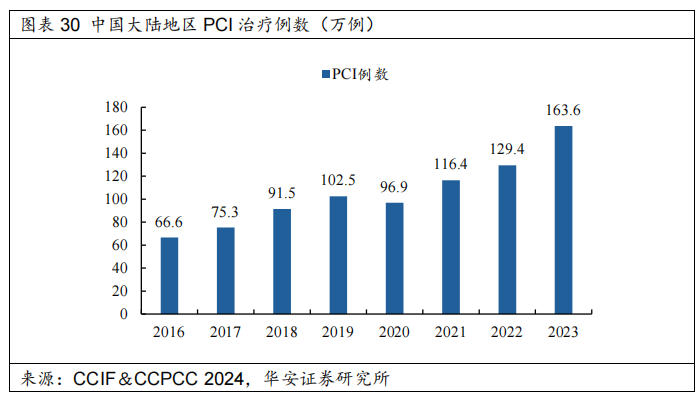 PCI手术稳定增长,公司通过子公司元心科技布局铁基可吸收支架。根据中国医师协会介入心脏病学大会暨第十三届中国胸痛中心大会(CCIF&CCPCC 2024)数据显示,我国开展的PCI手术例数已从2016年的66.6万例,增长至2023年的163.6万例,年复合增长率约13.7%。公司旗下重要子公司元心科技是全球稀缺的从事铁基可吸收材料研发的企业,平台研发的适应症包括IBS可吸收药物洗脱冠脉支架、Titan可吸收药物洗脱外周支架、ANGEL铁基可吸收支架,分别治疗冠心病、外周血管病和肺动脉狭窄三个适应症。