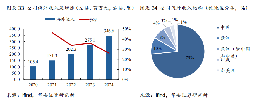 内生外延双轮驱动,海外国际化进展迅速。公司一直坚持“创新”和“国际化”的双轮驱动发展战略,在丰富的创新产品组合和高质量的学术服务支持下,公司的国际业务保持了快速增长。公司2024年海外收入同比增长3.47亿元,同比增长26.0%,占总收入的比重上升至26.6%。海外收入结构来看,欧洲和亚洲(除中国、印度)是公司的主要海外市场,销售额分别占总收入的约10%和约8%,同时公司的先心封堵器在东南亚市场显示出强大的市场竞争力。