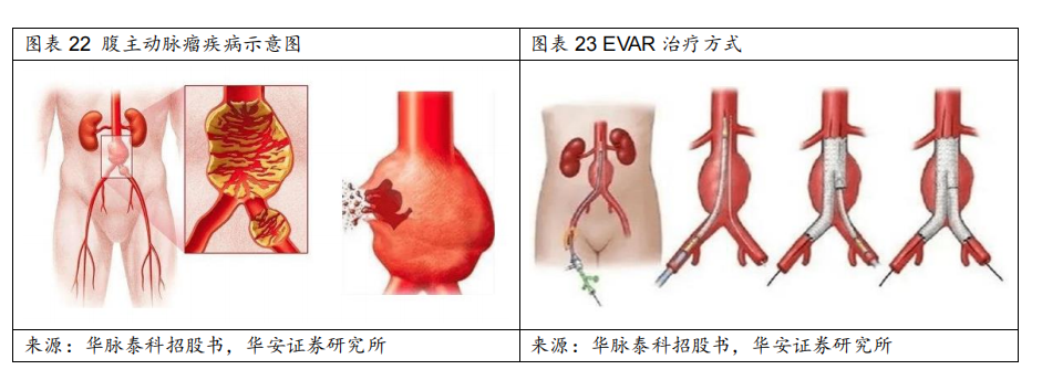 EVAR是腹主动脉瘤的主要治疗手段。腹主动脉瘤的治疗方法包括药物治疗、开放手术治疗和腔内治疗,开放手术。随着腔内介入器械和技术的进步,腔内修复术的适应症逐渐扩大至腹主动脉瘤的治疗,即腹主动脉瘤腔内修复术EVAR。EVAR是通过股动脉,应用特质的输送装置导入覆膜支架,将支架固定于正常段的主动脉壁,隔离非正常区域的高压动脉血流与动脉瘤壁,从而达到治疗目的。腔内介入修复具有伤口小、失血少、疼痛轻、恢复快等低侵袭性的显著优势。
