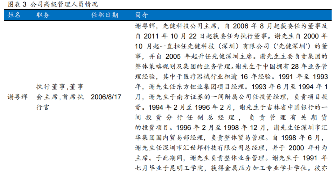 公司实控人医疗器械行业出身,具备丰富的管理经验。公司实际控制人谢粤辉先生自2000年10月起一直担任公司董事,并自2005年起升任公司主席。谢先生主要负责集团的整体策略规划及集团的业务管理,拥有28年业务管理经验,其中于医疗器械行业积逾16年经验,拥有丰富的医疗器械行业管理经验。