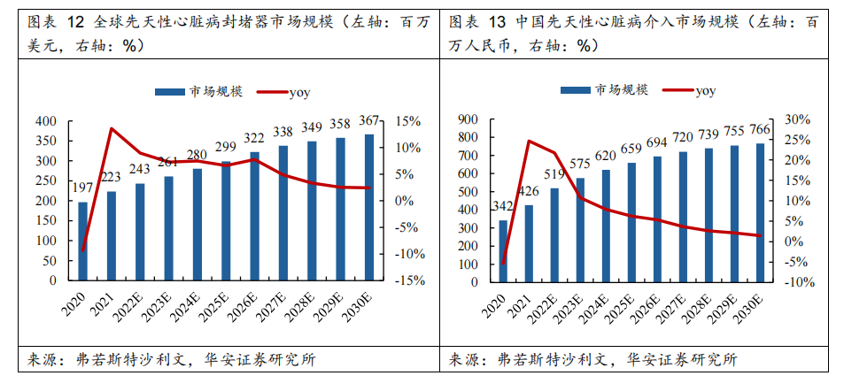 根据弗若斯特沙利文2022年预测,全球先天性心脏病封堵器市场由2020年的1.97亿美元增至2030年的预计3.67亿美元,年复合增长率为6.4%;中国先天性心脏病封堵器市场由2020年的人民币3.42亿元增至2030年的预计7.66亿元,年复合增长率为8.4%。